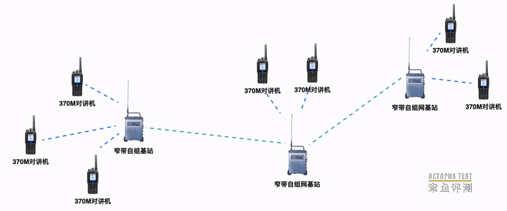 窄带的集群对讲一般需要专用的基站支持,其覆盖距离是有限的。在应急场景下,想要发挥集群对讲的优势,需要临时组建一个小范围的集群对讲覆盖区域。